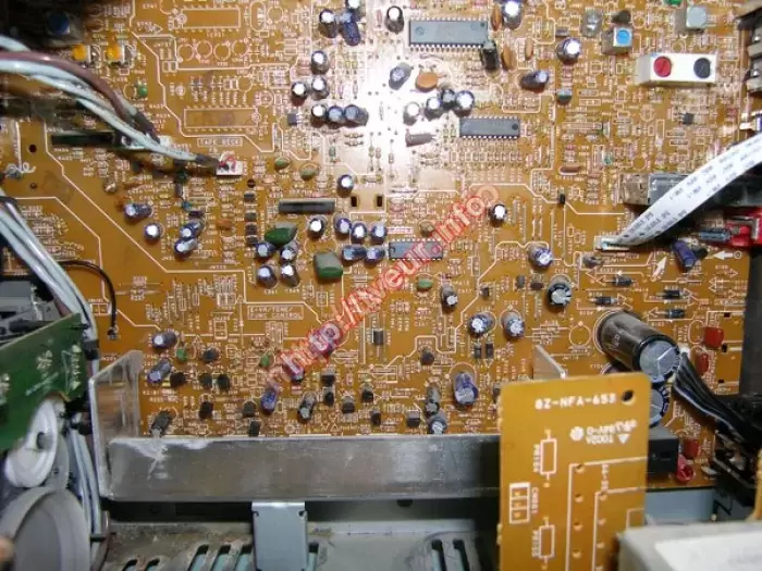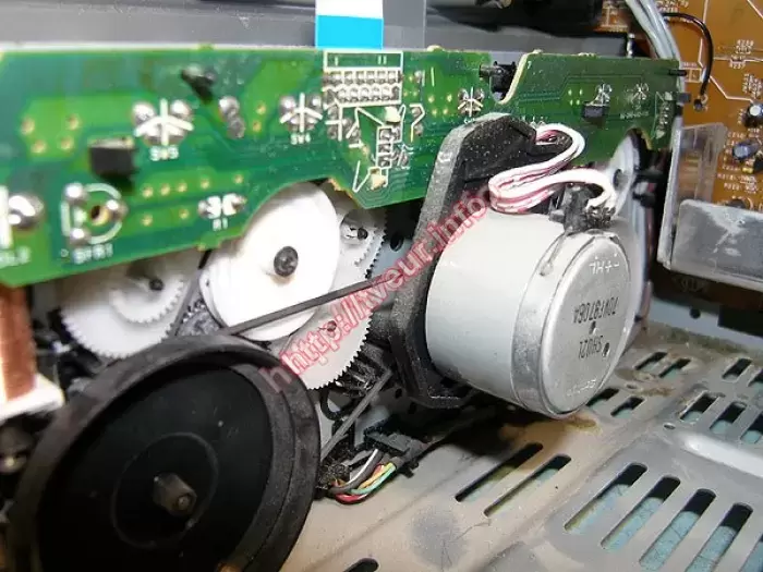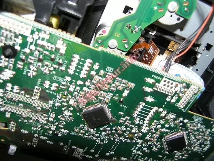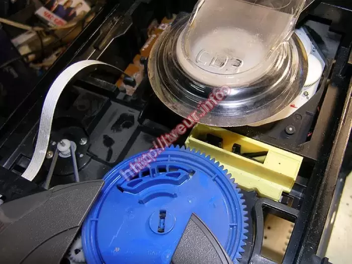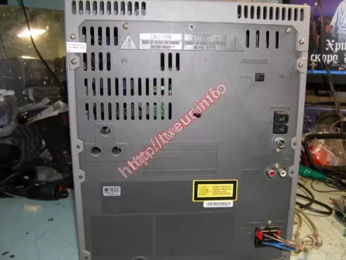После вкл. не работает регулятор громкости, отходит контакт разъема AUX и Speakers, не читает диски. Ремонт музыкальных центров состоял в восст.монтажа сгнивших дорожек платы УНЧ, реставрации энкодера громкости, чистка и проф. привода CD.