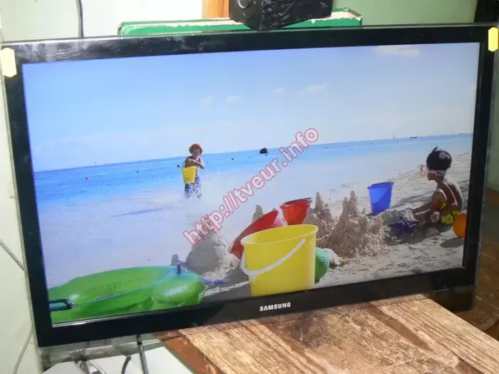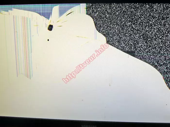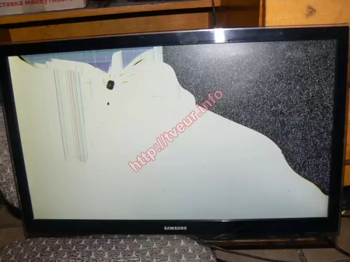 В сервисный центр доставили 22-дюймовый (55 см) жидкокристаллический телевизор с LED подсветкой Samsung 22H5600AK, у которого очень сильно испорчена матрица. Со слов заказчика выяснили, что неисправность случилась по неосторожности, оказалось, что дети во время игры бросили в телевизор каким то предметом, что привело к тому, что появились трещины. Причем одна из них визуально разделила экран на две части. В данном случае замена матрицы Samsung нужна еще и потому, что левая ее часть белого цвета, где отчетливо видно место от удара, оно выражается в небольшом пятне черного цвета, под которым еще одно черное пятнышко, но меньшего размера. На белом фоне вдоль боковой рамки просматриваются многочисленные вертикальные линии разного цвета, которые доходят до середины экрана. Над местом удара образовалось растровое пятно. Остальная часть матрицы в серой ряби. Рамка телевизора не пострадала. Данная модель, которая собрана в 2016 году, отличается хорошими техническими характеристиками, она с поддержкой функций Smart TV (платформа Samsung Smart TV), Wi-Fi и другими. Наличие технологии Clear Motion Rate (CMR) гарантирует яркую и четкую картинку, а мощный четырехъядерный процессор отвечает за повышение производительности. Чтобы стала возможной замена матрицы Samsung, ее необходимо было заказать и купить, только потом произвести демонтаж разбитой. У нас большой опыт по выполнению подобных ремонтов, поэтому после замены панели и настроек, изображение высочайшего качества.