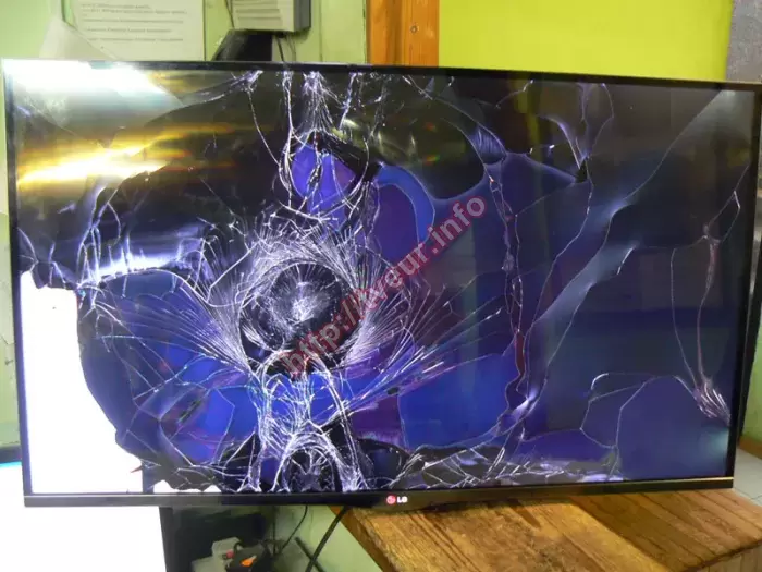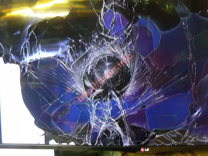Современный 3D телевизор LG 42LA690V-ZB поступил в сервисную мастерскую с очень сильно испорченным экраном, который после падения состоит из «паутины» трещин. С такой проблемой неизбежна дорогостоящая замена матрицы телевизоров, выполнить которую необходимо доверить только профессионалам. Данная модель, которая изготовлена в 2013 году, наделена прогрессивными технологиями и функциями, в число которых можно причислить Smart TV, Wi-Fi, а также широкий выбор разъемов, в том числе три USB 2.0 и еще четыре HDMI. Угол обзора равен 178 градусам. Как объяснил заказчик, этот телевизор после падения, в результате на матрице образовалась вмятина, вокруг которой огромное количество трещин разной длины, формы и ширины. Практически весь экран испещрен трещинами, нижний левый угол белого цвета, верхняя часть темная, а остальная матрица синего цвета разных оттенков (хорошо видно на фото № 1, 2 и 4). Очевидно, что в данной ситуации возможна исключительно замена матрицы телевизоров, которую нужно подобрать к данной модели. Такой ремонт относится к разряду сложных, поскольку после демонтажа разбитого экрана, необходимо правильно, максимально аккуратно, чтобы не повредить, установить новую 42-дюймовую LED матрицу. В данном случае ремонт был результативный, а после успешной замены выполнены все необходимые настройки телевизора. Пользователю не только выдана гарантия на новую деталь, но также даны разъяснения по правильной дальнейшей эксплуатации телевизора.