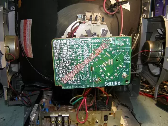 Если через некоторое время после включения кинескопного телевизора пропадает изображение на экране, то причину стоит искать в модуле строчной развертки или модуле питания. Подобные поломки гарантировано потребуют ремонт телевизоров.