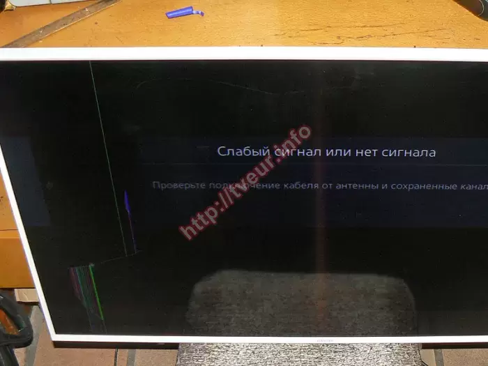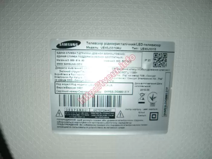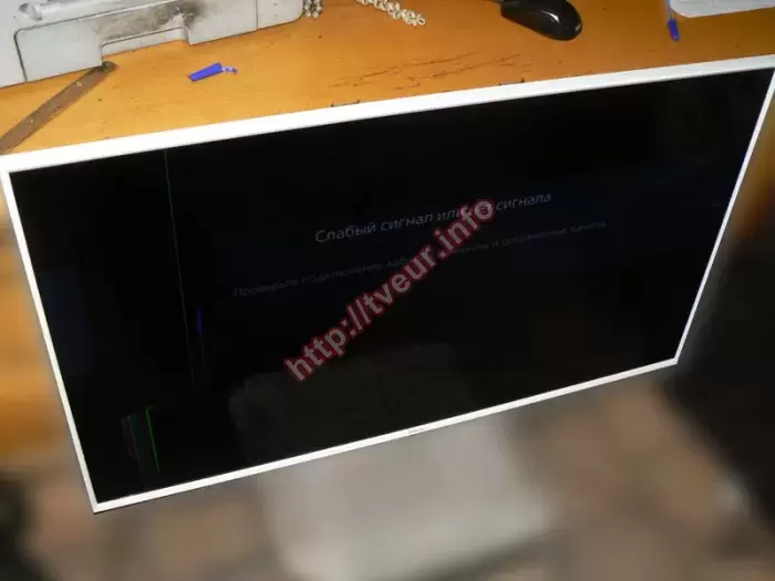 В 40-дюймовом телевизоре Samsung UE40J5510AUXUA, который наделен такими современными, очень востребованными функциями, как встроенный Wi-Fi модуль и Smart TV повреждена LED матрица. Возникновение таких неисправностей, как правило связано с неаккуратным, не правильным использованием телевизора, у которого очень тонкая, хрупкая и уязвимая панель, поэтому любое неосторожное движение может привести к тому, что потребуется дорогостоящая замена матрицы телевизоров, выполнить которую без надлежащих знаний, опыта и наличия специальной оснастки практически не возможно. Данную модель, которая собрана в 2015 году, прислали из города Винница в «родной» коробке, так как на ней множественные дефекты, появившиеся в результате удара. На экране появилась длинная глубокая трещина, а также разноцветные вертикальные полосы разной длины. Посередине экрана широкая светлая полоса, на которой отчетливо видна заставка (см. фото № 2). Еще одно голубое пятно прямоугольной формы возле левой боковой рамки. Остальная часть матрицы залита черным цветом. Очевидно, что замена матрицы телевизоров в данной ситуации является наилучшим решением проблемы. Наши специалисты смогли заказать и купить подходящую по всем параметрам новую панель и выполнить ее замену вместо той, которая разбита. В конце ремонта сделаны все соответствующие настройки. В этой же упаковке телевизор отослан обратно заказчику. На новую матрицу выдана гарантия.