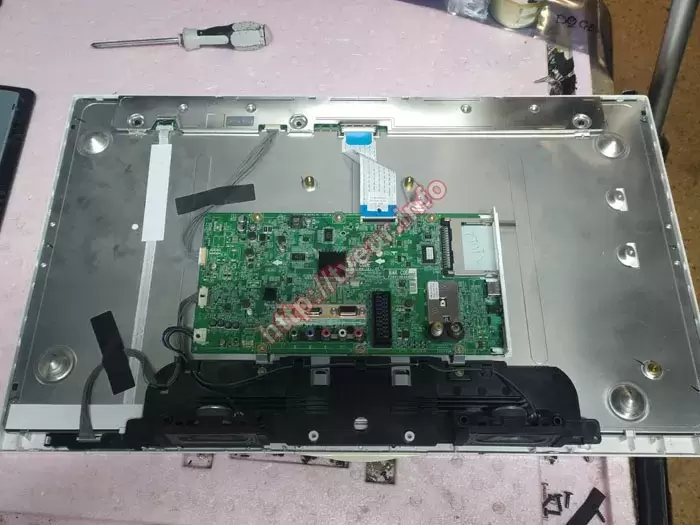 К нам в сервисный центр доставили телевизор LG 26LN457U с заявленной неисправностью - на экране при включении начинает дрожать изображение, также появились мелкие вертикальные светлые полоски от светлых предметов. С появлением таких дефектов просмотр крайне не комфортный. Предположительно потребуется восстановление матрицы телевизора, поскольку на это указывают все «симптомы». При этом утверждать об этом можно будет только после проведенной диагностики. На приемке заказчик сообщил, что телевизор еще с заводскими пломбами, поскольку неисправность возникла впервые, соответственно его еще не разбирали.
