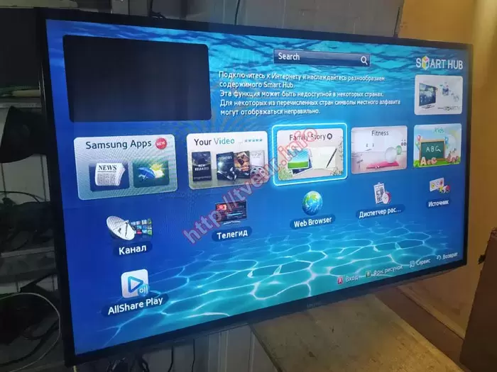 В поступившем телевизоре Samsung UE55ES6307U достаточно сложная неисправность, а именно, на экране двоится и прыгает изображение, кроме того, появились вертикальные полосы, из-за чего просмотр не возможный. Судя по «симптомам» потребуется ремонт матрицы телевизора, при этом это должно быть подтверждено выполненной диагностикой. На приемке заказчик рассказал, что приобрел этот телевизор достаточно давно, но за все время использования он сломался впервые. Когда телевизор включили непосредственно в мастерской, картинка на экране дрожала и двоилась.