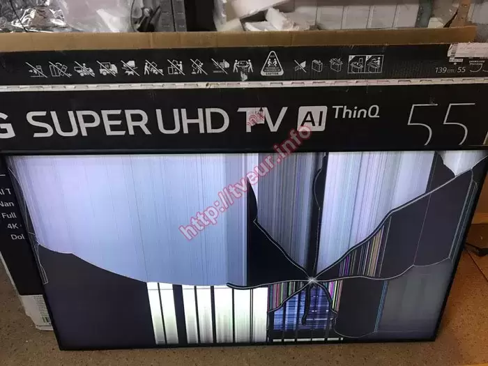 Телевизор LG 55SK8500PLA в родной коробке прислали в нашу мастерскую из города Краматорск по причине того, что очень сильно разбита матрица, на ней появились разного рода механические дефекты, в виде дырки, трещин, пятен и полос. По телефону пользователь рассказал, что когда произошла проблема он пытался, чтобы замена экрана на телевизор была выполнена в его городе, обращаясь для этого в несколько сервисных центров. При этом решить проблему не смог, потому решил обратиться за помощью к нам. У нас всегда выполняются подобные ремонты, поэтому телевизор принят в работу. От заказчика также узнали, что он купил телевизор в 2019 году, а поскольку данная модель наделена хорошими техническими характеристиками и функционалом, ему важно, чтобы был выполнен ремонт.