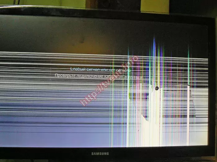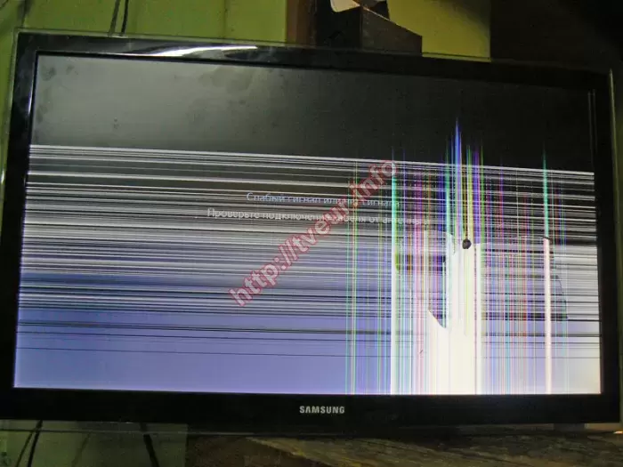 В сервисную мастерскую поступил 22-дюймовый LED телевизор Samsung UE22H5600AK, у которого вследствие неаккуратной эксплуатации очень сильно разбита матрица. Этот современный телевизор, который изготовлен в 2016 году, наделен самыми инновационными функциями, в число которых входит Smart TV и Wi-Fi. Благодаря улучшенной технологии Clear Motion Rate (CMR) минимизируется эффект размытия изображений, которые движутся. Для повышения производительности в телевизоре используется мощный четырехядерный процессор изображения. Когда разбита матрица телевизора замена будет неизбежной, более того, дорогой, поскольку с трещинами или сколами ее ремонт не возможен. После осмотра разбитого экрана телемастером сделано заключение, что по причине сильного удара на ней появилась дырочка, причем достаточно большая. От нее в разные стороны расходятся трещины. Вверху 1/3 экрана черного цвета. Остальная в многочисленных горизонтальных полосах. В районе удара они пересекаются вертикальными разноцветными полосами. Посередине экрана осталась видна заставка. Нами заказана и куплена матрица телевизора замена ее выполнялась на специальном оборудовании, которым располагает наша теле мастерская. После удачной, результативной замены сделаны соответствующие настройки. Новую панель беречь от различных механических повреждений!