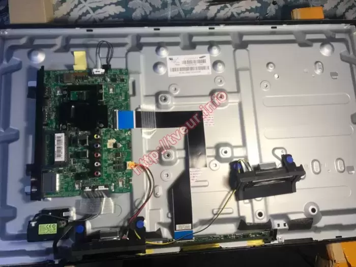 Внешне телевизор выглядит хорошо, к рамке, корпусу и экрану претензий нет, они аккуратные, без каких-либо механических повреждений. Прежде чем выполнять бесплатную диагностику телевизоров, телевизор полностью разобрали. Это позволило узнать, в нем используется плата Main Board TP.MT5510S.PB803. Углубленная диагностика показала, что проблема не из простых, поскольку неисправна основная плата, из строя вышли цепи питания T-CON.