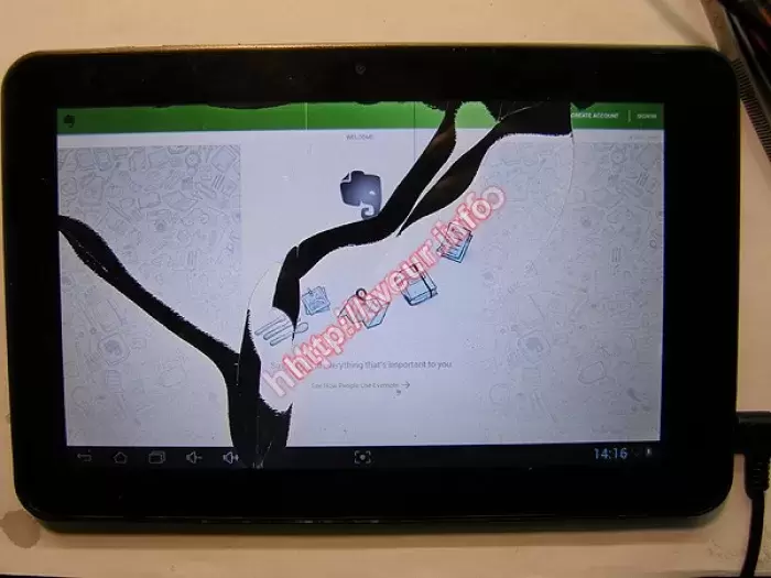 Такая проблема, как разбитый сенсорный экран планшета возникает как правило по вине пользователя - удары, падения. В данном случае ремонт планшетов состоит в полной замене тачскрина, выполнять который нужно в сервисном центре.