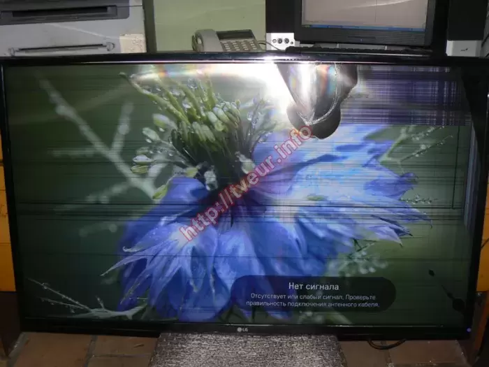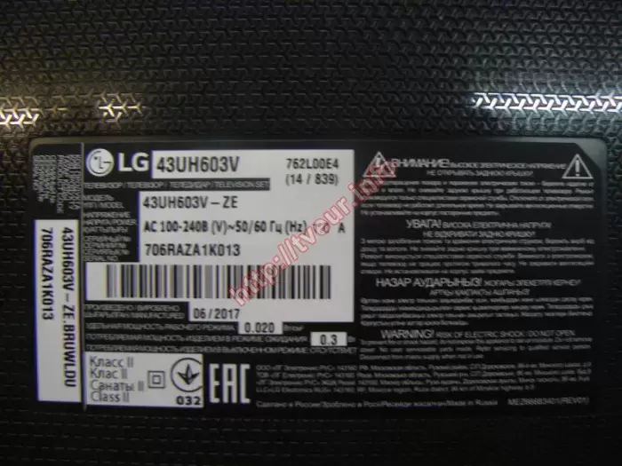 В современном, 2017 года выпуска телевизоре LG 43UH603V-ZE поврежден большой 43-дюймовый LED дисплей. Телевизор доставлен заказчиком в наш сервисный центр, чтобы была выполнена срочная замена дисплея телевизора. Ранее это устройство с поддержкой таких функций, как Smart TV и Wi-Fi не вскрывалось и не ремонтировалось, внешне оно в отличном состоянии. Корпус телевизора аккуратный, чистый, без царапин, на задней стенке в положенном месте расположена этикетка со всей информацией о модели - год и страна изготовитель, модель, серия, мощность и др.(отлично видно на фото № 4). При этом вследствие не аккуратного обращения матрица очень сильно испорчена, на ней трещины. Особенно их много возле верхней рамки, а также в нижнем левом углу. Вверху образовалось темное пятно неопределенной формы, вправо от которого растровая полоса, состоящая из пересекающихся разноцветных вертикальных и горизонтальных линий. По всему экрану также просматриваются многочисленные полосы. Очевидно, что с такой проблемой без замены дисплея телевизора не обойтись. В первую очередь необходимо было купить новую матрицу подходящего размера и определенной модели, которая была доставлена в картонной коробке, она обложена пенопластом (можно посмотреть на фото № 6). Испорченную матрицу демонтировали, установили новую, сделали все необходимые настройки, в результате чего телевизор полностью рабочий. После дорогостоящей замены беречь экран от любых механических воздействий - толчков, ударов, вибраций и т.д.