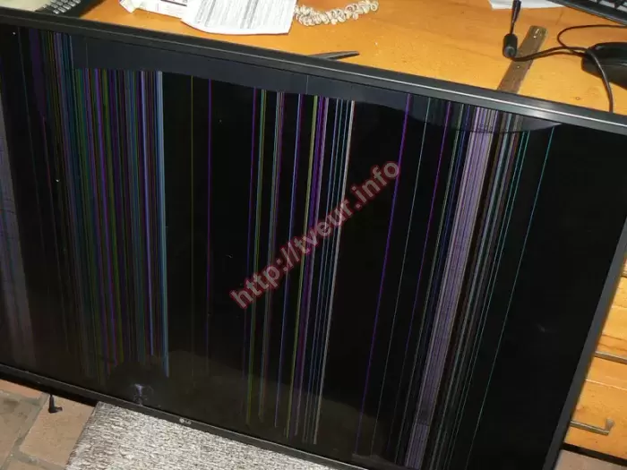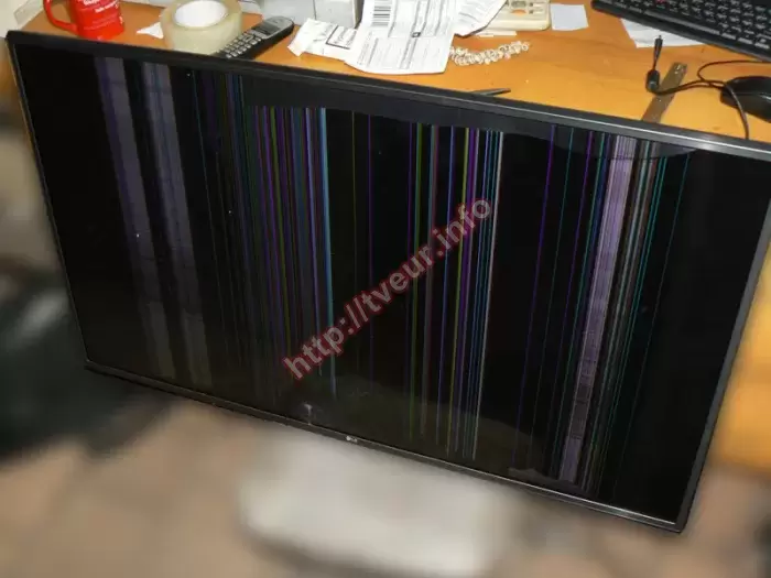 Очень часто современные телевизоры, у которых очень тонкие и хрупкие экраны, подвержены различным механическим повреждениям, которые в большинстве случаев происходят по вине самих же пользователей. По ним ударяют, заливают водой или другой жидкостью, телевизоры падают и как результат цена замены экрана телевизора достаточно высокая. К нам поступил 43-дюймовый LED телевизор LG 43LH604V, у которого глубокая трещина на матрице. Данная неприятность случилась по вине детей, которые нечаянно попали в телевизор каким-то предметом и он сразу вышел из строя, экран стал черного цвета и появились многочисленные полосы. Данная модель достаточно современная, она изготовлена в 2017 году и наделена самыми последними разработками, такими как Smart TV (WebOS 3.0) и встроенный Wi-Fi модуль. В телевизоре используется мощный процессор Triple XD Engine, который отвечает за безукоризненное качество изображения. Как оказалось, матрица повреждена возле нижней рамки, чуть левее логотипа, там образовался скол и длинная трещина вдоль всей рамки. Еще одна большая трещина сверху. Практически весь экран в разноцветных вертикальных столбцах. В данном случае цена замены экрана телевизора была согласована с заказчиком, после чего ее заказали и купили. Только после этого сняли разбитую панель и выполнили замену и настройки. С ценой клиент полностью согласен.