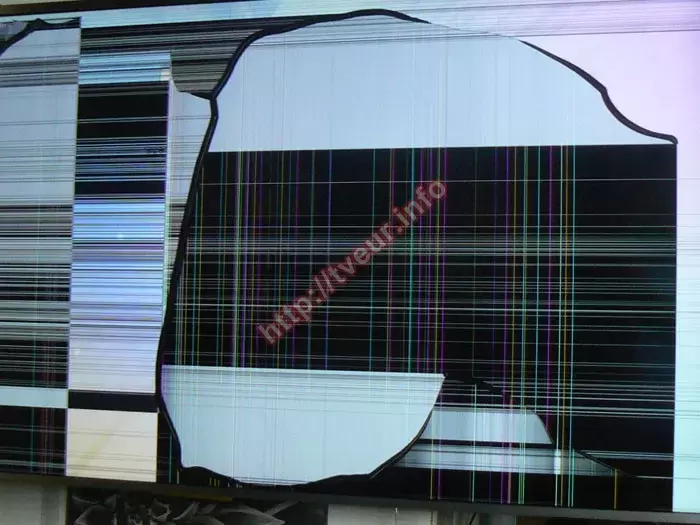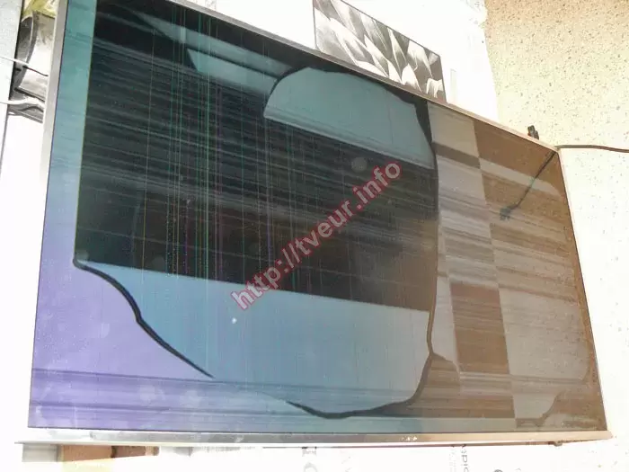 В телевизоре Samsung UE49MU6402U очень сильно повреждена 49-дюймовая матрица, на ней много разных механических повреждений, картинка на экране полностью отсутствует. По данной причине клиент обратился в наш сервисный центр, чтобы была выполнена замена матрицы Samsung. На приемке он сообщил, что данная модель приобретена ним около трех лет назад. При выборе учитывалось разрешение и наличие необходимых функций. По этой причине ему крайне важно выполнить ремонт этого телевизора, а не купить новый. От него также узнали, что после покупки телевизор повесили на стене, однако это не помешало тому, что в экран попали пультом дистанционного управления (дети забирали его друг у друга, чтобы переключить нужный канал). Картинка на экране пропала, а вместо нее появились разного рода механические дефекты.
