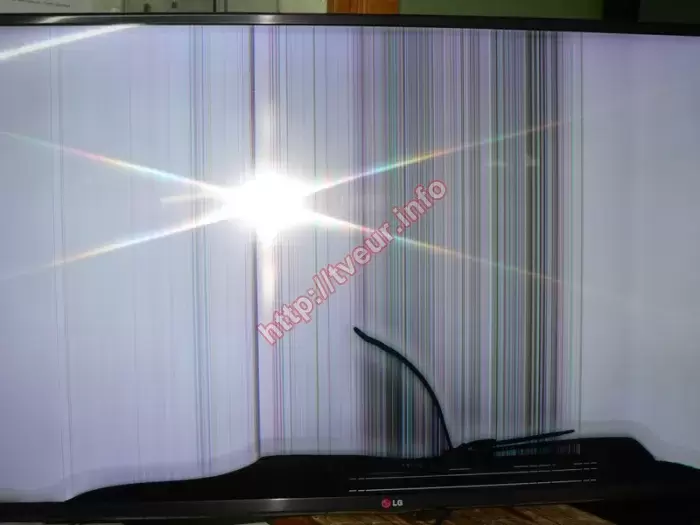 В нашу сервисную мастерскую поступил 42-дюймовый телевизор Смарт ТВ, а именно, LG 42LB631V, у которого серьезная неисправность, у него достаточно сильно разбит LED экран, на нем появились разнообразные повреждения и дефекты. По этой причине гарантированно потребуется замена экрана в телевизоре LG, которая будет сложной и дорогой. Данная модель собрана в 2014 году, она наделена самыми современными и прогрессивными технологиями, благодаря которым качество изображения и звука на высоте. На приемке заказчик объяснил, что проблема произошла по чистой случайности, когда в матрицу по неосторожности попал пульт дистанционного управления, который ее пробил своим углом. Телевизор установлен в специальной мебельной нише, поэтому он пожалел, что не повесил его на стену. Как результат чуть правее логотипа появилась небольшая дырочка, от которой расползлись глубокие трещины (отлично видно на фото №1 и 2). Еще одна длинная, глубокая трещина видна вдоль всей нижней рамки. Под трещиной внизу экран залит черным цветом, здесь же просматриваются горизонтальные пунктирные линии белого цвета. Остальная матрица белого цвета, здесь огромное количество вертикальных разноцветных линий, некоторые из которых более сильно выражены, другие - менее. Любая замена экрана в телевизоре LG может быть выполнена только после того, как будет приобретена идентичная новая панель. Более того, для выполнения такой сложности ремонта не обойтись без специального оборудования. Мы купили нужную матрицу, демонтировали разбитую и взамен нее поставили новую. После всей настроек изображение отличное (см. фото № 5). Заказчику дана гарантия, а также рекомендации по дальнейшей эксплуатации телевизора с тонкой и хрупкой матрицей.