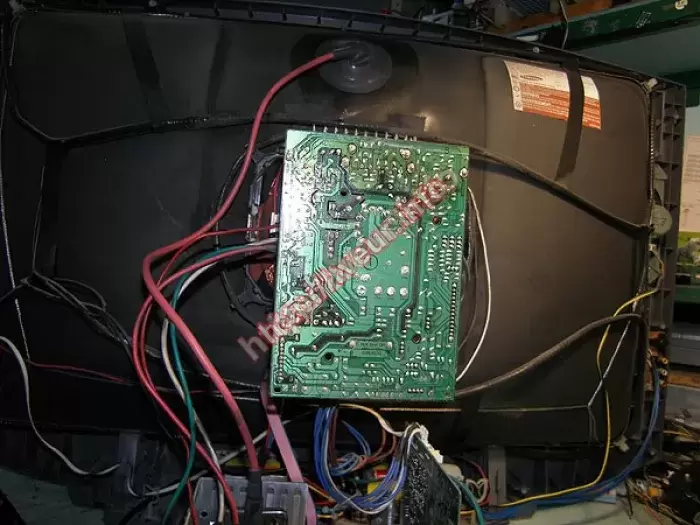 Горизонтальная полоса на экране ЭЛТ телевизора говорит о том, что нужен ремонт телевизоров. Быстрее всего проблема в модуле кадровой развертки. Потребуется замена некоторых деталей, а также восстановление дорожек в данном модуле.