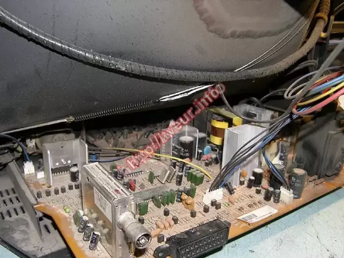 Появление горизонтальных полос на экране ТВ, чаще всего говорит о неисправности модуля кадровой развертки. Ремонт телевизоров заключался в замене конденсатора 220,0 * 35 В и микросхемы TDA8351 в данном модуле + профилактика.