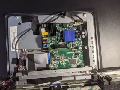 Телевизор поступил в сервис в аккуратном состоянии без внешних повреждений. При первичной проверке было замечено: индикатор питания работает, но экран остается полностью черным, что сразу указывало на возможные неполадки в системе подсветки. Для того чтобы провести полную проверку и предоставить клиенту бесплатную диагностику телевизоров, мастер приступил к разборке устройства. Задняя крышка выполнена в двухсекционном варианте, поэтому первым делом специалист снял центральную, меньшую по размеру часть, отвинтив несколько винтов. Это открыло доступ к основной «моноплате» TP.VSI59T.PB706, объединяющей блок питания и Main board, а также к шлейфам, ведущим к LED драйверу. В данной версии телевизора установлена матрица BOE1320WX1-01. Проверка напряжения на цепях подсветки с помощью мультиметра и LED тестера показала наличие управляющего сигнала, что позволило исключить неисправность блока питания и материнской платы. Далее специалист аккуратно демонтировал рамку матрицы, стекло и слой рассеивателей, чтобы добраться до светодиодных планок. В этом телевизоре используется три линейки по семь светодиодов на каждой стандарта 3V. Во время диагностики было выявлено, что на одной из планок один светодиод полностью вышел из строя, он не пропускал ток и не загорался даже при подаче тестового напряжения. Это и стало причиной отсутствия подсветки.