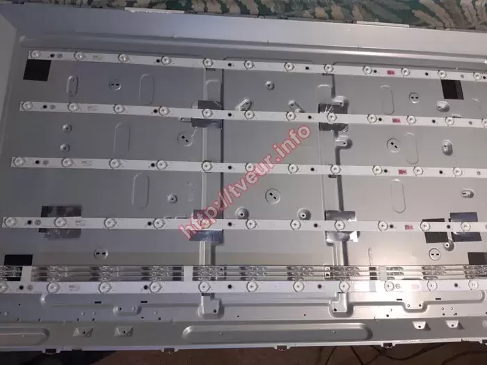 В связи с возникшей неисправностью была заменена вся подсветка TPT430U3-EQLSJA, состоящая из пяти планок. Данное решение позволило окончательно устранить проблему, так как неисправность была ликвидирована, изображение на экране имеется и обладает отличным качеством, подсветка равномерная, а также отсутствуют засветы и другие дефекты. По окончании трудоемкого и в то же время эффективного ремонта, телемастер проверил все заводские параметры изображения, уменьшив их с максимальных уровней. За выполненные работы по ремонту и новый комплект подсветки заказчику выдана гарантия.