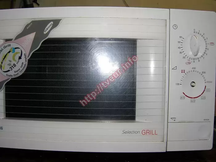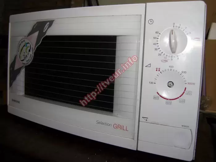 Достаточно устаревшая микроволновая печь с грилем Samsung M9G35 плохо работает, у нее искрит при работе СВЧ. По этой причине, которая является очень распространенной, пользователь доставил ее в нашу мастерскую чтобы был выполнен ремонт микроволновых печей, причем в срочном порядке. Данная модель с механическим управлением, объемом 26 литров и мощностью 1500 Вт. У нее 9 уровней мощности в режиме СВЧ и 3 уровня в режиме комби (СВЧ + гриль). Имеется режим размораживания. Эта бытовая техника наделена вращающимся подносом (диаметр 31,8 см). У нее имеется звуковой сигнал включения\ отключения. Мы всегда занимаемся ремонтом такой кухонной техники. Поэтому в ходе выполненной диагностики мастер определил, что микроволновая печь в удовлетворительном состоянии, у нее сильно прогорела слюдяная пластина, отсутствует ручка переключения мощности. Кроме того, проблема возникла в работе волновода, который был почищен. Кроме того, пришлось поменять новую слюду 125-70мм, почистить СВЧ печь внутри, которая сильно зажирена и грязная. После всех вышеперечисленных восстановительных работ техника работает исправно. Чтобы это продолжалось как можно дольше, пользователю указано на то, что за микроволновкой необходимо периодически ухаживать, протирать от накопившегося жира, а также после приготовления блюд проветривать!