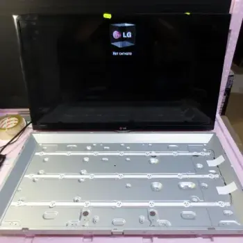 До нашої сервісної майстерні надійшов телевізор LG 32LN541U зі скаргою на відсутність нормального зображення. Екран залишається темним, однак при уважному огляді та спрямуванні яскравого світла під певним кутом можна розгледіти слабкий контур того, що на зображенні. Це є типовим проявом несправності підсвітки матриці, коли картинка фактично присутня, однак вона не підсвічується світлодіодами.