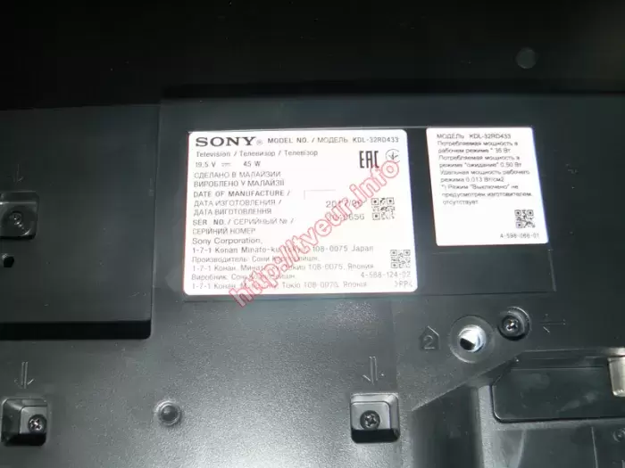 В 32-дюймовом телевизоре Sony KDL-32RD433 с LED подсветкой, который изготовлен 2017 году (Малайзия) очень сильно повреждена матрица, на ней разного типа механические повреждения, появившиеся вследствие неаккуратного использования. В данном случае пользователь обратился за помощью, поэтому стоимость замены матрицы телевизора с ним согласована. Данная модель с технологией улучшения качества изображения, отличается хорошим углом обзора 178°/178° и наличием самых прогрессивных разъемов, в число которых входят два HDMI, два USB и другие. После предварительного осмотра сделано заключение, что в результате удара по экрану, на нем многочисленные трещины в разные стороны. Визуально они напоминают цветок. Между трещинами разноцветные полосы, особенно много их по правую сторону от места удара. Вверху образовалось достаточно крупное белое пятно, на котором еле просматриваются цветные пересекающиеся линии. Вниз от удара пошло еще одно растровое пятно, но серого цвета. Остальная часть экрана черного цвета. С правой стороны видны части заставок. Как показывает многолетний опыт работы стоимость замены матрицы телевизора будет не дешевой, при этом ремонт намного выгоднее покупки нового телевизора. Панель нужной модели была заранее заказана и куплена, после чего снята разбитая и на ее место установлена новая. Выполнены все настройки изображения, оно хорошего качества. Стоимость данного сложного ремонта, на который выдана гарантия, пользователя полностью устроила.