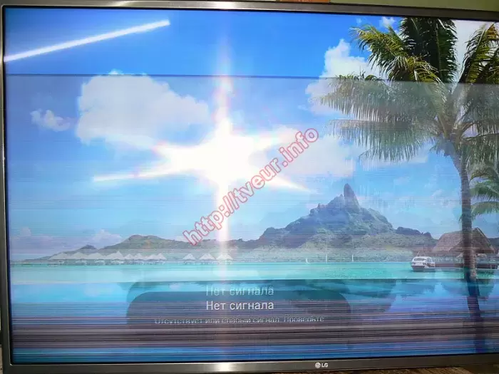 К такой сложной неисправности, когда на матрице современного телевизора появляются горизонтальные линии (полосы), могут приводить различного рода механические воздействия, например, удары или толчки, падения или вибрации. В любом случае ремонт матрицы телевизора будет не только сложным, но и достаточно дорогостоящим. Это подтверждает данный случай, когда на 43-дюймовом экране жидкокристаллического (Smart TV) телевизора с LED подсветкой появились многочисленные горизонтальные полосы. Они очень хорошо видны внизу возле рамки, ближе к середине они как бы становятся полупрозрачными, на цветном изображении их тяжело увидеть (фото № 2). Ближе к верхней рамке еще одна полоса, более толстая, чем остальные. Данная модель телевизора отличается высокими характеристиками, в ней были использованы самые современные функции и технологии. Это говорит о том, что такой сложный ремонт матрицы телевизора должен выполняться опытными телемастерами. Более того, для его осуществления не обойтись без специального оборудования. После того, как в ходе диагностики были точно определены те компоненты матрицы, которые вышли из строя, они были заменены на новые. Такой ремонт оказался с положительным результатом, при этом пользователю дали рекомендации по правильной эксплуатации этой современной техники. На ремонт и детали выдана гарантия.