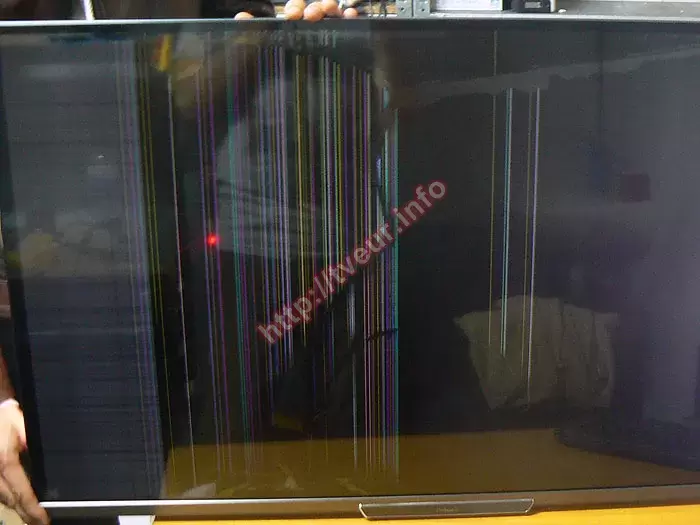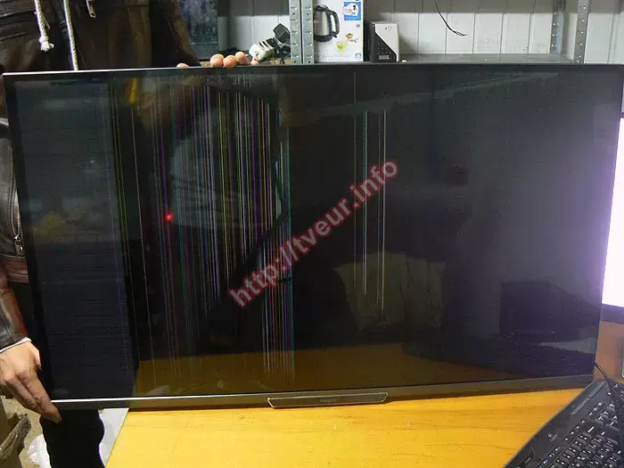 Из-за сильного удара по матрице на ней появились множественные дефекты. Левее логотипа Philips появилась дырка, от которой трещины в разные стороны. Также видны глубокие длинные трещины по всему экрану, вокруг которых разводы и многочисленные вертикальные разноцветные столбцы. Около боковой левой рамки появилась достаточно широкая белая полоса, на которой видны полосы, как вертикальные, так и горизонтальные. Остальная матрица залита черным цветом. Выполненная диагностика телевизора, цена на которую не будет учитываться в случае дальнейшего ремонта, показала, что возможно сделать замену экрана с сохранением 3D режима. Результаты диагностики сообщили заказчику и получив от него согласие на выполнение ремонта приступили к работе.