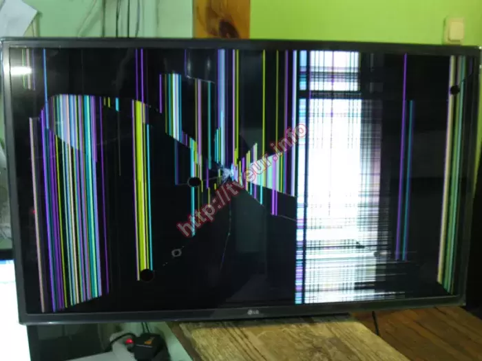 Не аккуратное, небрежное отношение к современной ТВ технике приводит к тому, что требуется дорогостоящая замена матрицы телевизора. Данный случай не исключение. К нам в сервисный центр привезли LED телевизор LG 32LH530V, у которого очень сильно разбита 32-дюймовая матрица. Данная модель отличается великолепным качеством изображения, так как в ней используется инновационный процессор Triple XD Engine. С помощью системы точной настройки Picture Wizard III пользователь имеет возможность быстро отрегулировать глубину черного, цветовую гамму, четкость изображения и уровень яркости. Телевизор наделен двумя ТВ-тюнерами (аналоговым + цифровым), а также семью разъемами для подключения. Это два HDMI, два входа для антенн (стандартной и спутниковой), по одному USB, компонентный вход и слот CI. Осмотрев устройство стало понятно, что по матрице чем-то ударили. Удар пришелся посередине экрана, во все стороны пошли трещины. На продольных трещинах появились трещины круглой формы. Особенно большая кругла трещина в левом верхнем углу возле рамки. Кроме того, весь экран покрыт многочисленными цветными вертикальными полосами. По правую сторону от удара появилась широкая светлая полоса, по которой тоже много горизонтальных и вертикальных полос. При этом весь экран черного цвета. С такой проблемой ремонт может состоять только лишь в замене новой матрицы, с чем полностью согласился заказчик. Нами была заказана соответствующая матрица и в последствии выполнена ее замена. После настройки, этот телевизор работает отлично. Пользователю указано на то, что нельзя допускать даже самых легких ударов по экрану.