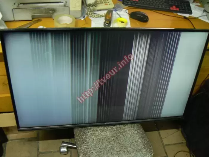 В 43-дюймовом 4K телевизоре LG 43UF7787 с LED подсветкой, наличием функций Smart TV (webOS 2.0) и Wi-Fi появились множественные вертикальные полосы по всему экрану, которые отлично читаются на темном фоне. По этой причине требуется сложный ремонт матрицы полосы, как оказалось появились после того, как ее помыли водой, об этом рассказал пользователь. Этот современный телевизор собран в 2015 году, он наделен IPS матрицей с высоким разрешением Ultra HD 3840x2160 (4K), а также широким выбором разъемов, в число которых входят три HDMI, два USB 2.0, один USB 3.0 и другие. Осмотрев телевизор телемастеру стало понятно, что проблема очень серьезная, поскольку вся матрица в многочисленных полосах, они отсутствуют только вдоль правой и левой боковых рамок. После разборки телевизора выполнен ремонт матрицы полосы при этом пропали, так как были заменены некоторые ее компоненты. Но возникла другая проблема, которая выражалась в том, что изображение на экране так и не появилось. После выполненной диагностики удалось установить, что требуется замена новой платы Tcon Board 6870C-0571B Halogen Free V15 43UHD TM120 LGE Ver0.2., восстановить работоспособность которой не предоставляется возможным. Такой ремонт оказался результативным, поскольку изображение на экране отличного качества, при этом достаточно дорогостоящим. На ремонт + новую деталь заказчику выдана гарантия.