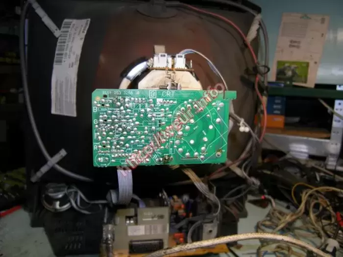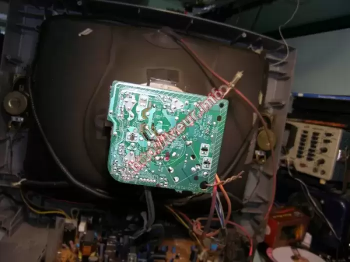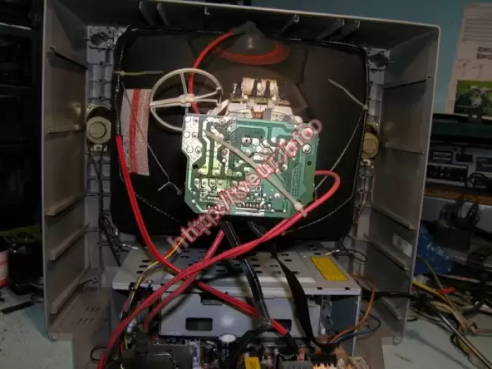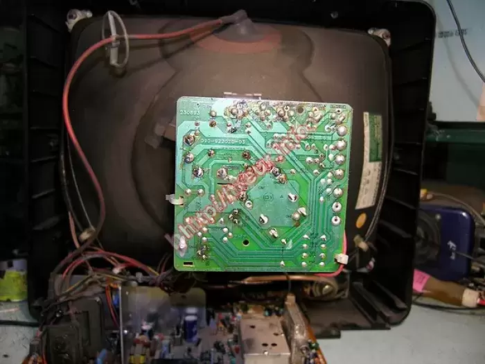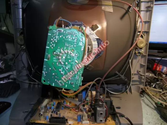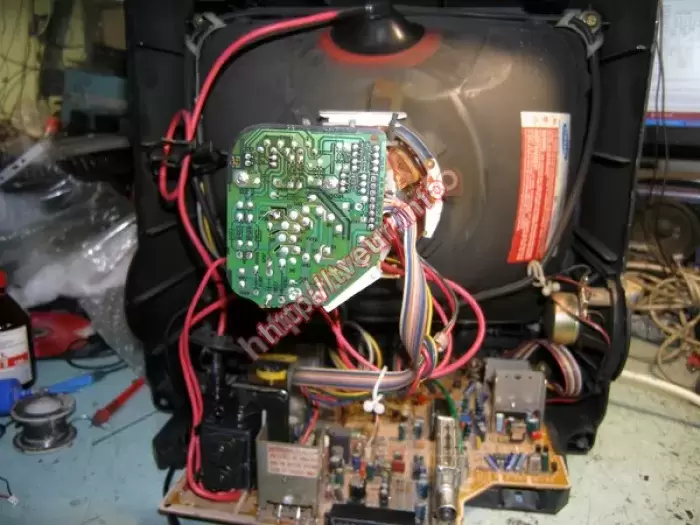 Отсутствие изображения на экране ЭЛТ телевизора, при звуковом сопровождение, свидетельствует быстрее всего про обрыв в цепи модулятора кинескопа или же поломка в микросхеме видеопроцессора. Ремонт телевизоров в таком случае неизбежен.