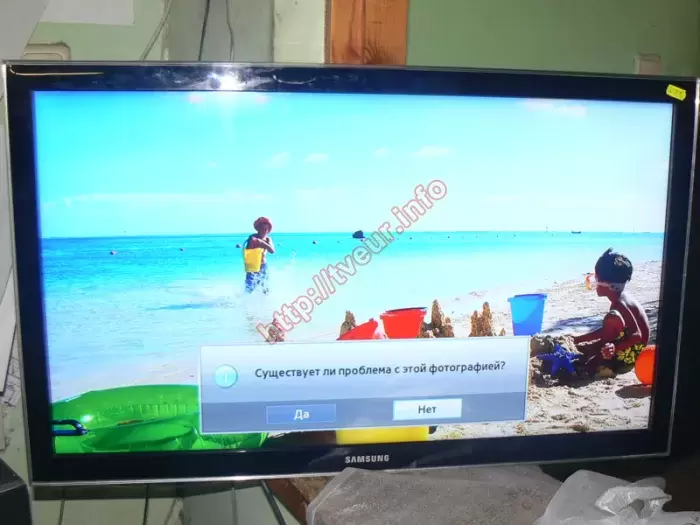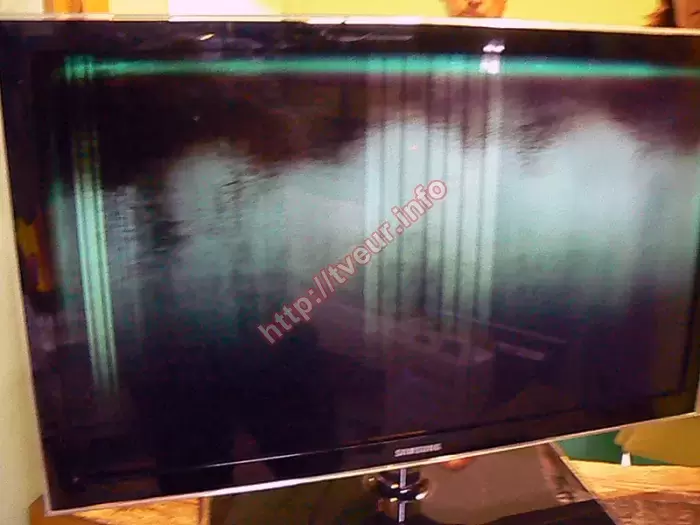 Как свидетельствует многолетняя практика, сложный и дорогостоящий ремонт полос на матрице требуется как правило, по вине самих же пользователей. Данный случай не исключение, поскольку после того, как 32-дюймовый (81.3 см) телевизор Samsung UE32D5000PW с LED подсветкой помыли водой, у него на матрице появились многочисленные полосы. Очевидно, что с таким дефектом просматривать телевизор не возможно. На приемке пользователь рассказал, что экран помыла жена, вероятнее всего вода могла затечь под матрицу и вызвать такое механическое повреждение. Сразу начали появляться полосы, которые меняют свою форму. Вначале пользователь обращался в другой сервисный центр, но там в ремонте отказали, ссылаясь на сложность неисправности, так как из строя вышла матрица. После этого он обратился к нам за помощью, а поскольку мы никогда не отказываем своим клиентам, телевизор принят в работу. Когда его включили стало понятно, что на экране семь вертикальных, достаточно широких линий (столбцов) серого цвета. Они сосредоточены посередине телевизора. Еще несколько полос, но поуже видны возле левой боковой рамки. Вдоль всей верхней рамки зеленая светящаяся полоса (см. фото 1 и 2). На втором фото также отчетливо видно, что вся матрица тоже отсвечивает зеленым цветом. С такой неисправностью ремонт полос на матрице был достаточно сложным, поскольку была выполнена замена некоторых ее элементов. Благодаря большому опыту телемастеров и наличию специального оборудования, этот ремонт оказался с положительным результатом. На него и новые детали выдали гарантию. Беречь телевизор от залитий жидкостью!
