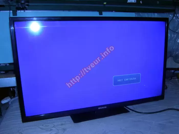 В телевизоре Bravis LED-32P26, который поступил в нашу мастерскую, периодически возникает проблема с исчезновением изображения на экране. Клиенту необходимо, чтобы мы выполнили ремонт подсветки телевизора Bravis, так как до нас он проконсультировался у специалистов, которые уверены, что из строя вышла именно подсветка. При включении телевизора на приемке подсветка действительно отсутствовала, при этом мастер заметил, что она появляется на несколько секунд и снова пропадает. В комплекте с телевизором заказчик передал подставку и пульт дистанционного управления. Он также сообщил, что телевизор был приобретен несколько лет назад для мамы и все это время использовался с теми настройками, которые уже были установлены.