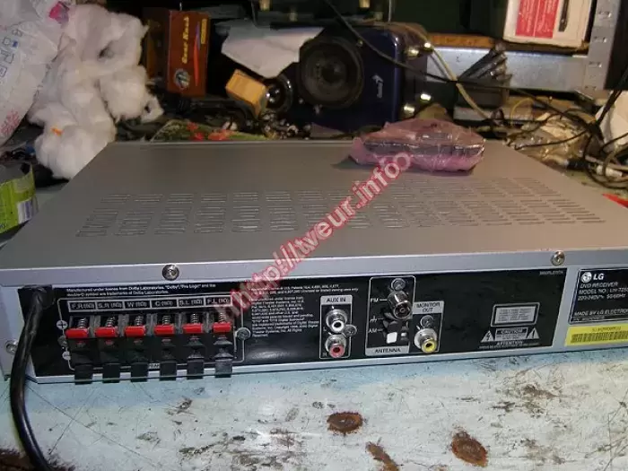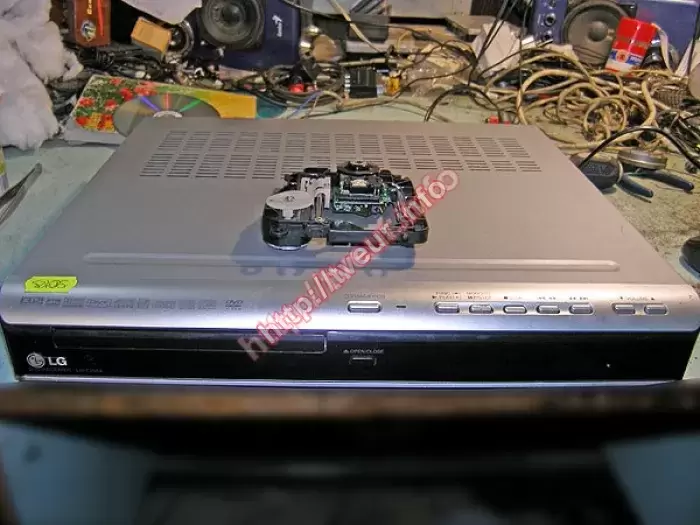 Домашний кинотеатр LG Lh-t255 (5.1) с суммарной номинальной мощностью 220 Вт, DVD-проигрывателем и FM-тюнером — не читает диски, сломаны кнопки. Из всего видно, что проблема состоит в DVD приводе, который придется восстанавливать. В конкретном случае ремонт домашних кинотеатров в замене новой лазерной головки SOH-DL3 с механикой, юстировке привода, реставрации четырех сломанных кнопок, а также других профилактических работах. После проведения ремонта, устройство опять в рабочем состоянии. Пользователю рекомендовано не давить сильно на кнопки!