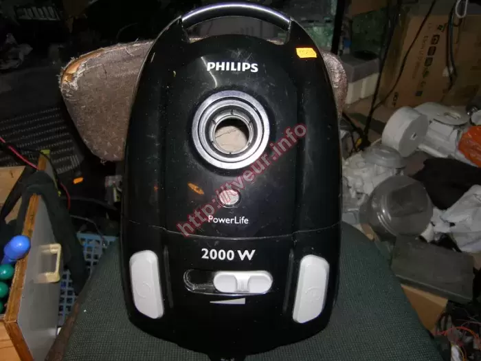 К нам в сервисный центр поступил пылесос, предназначенный для сухой уборки (с мешком) - Philips FC8452/01 PowerLife, который перестал включаться. Кроме того, нет фиксации кнопки «Включение» (отключается). Как объяснил пользователь, после включения необходимо удерживать пальцем кнопку питания, поскольку в нажатом положении она не фиксируется. По этой причине требуется ремонт пылесосов, за который взялись наши мастера. Данная модель наделена мотором с мощностью 2000 Вт, благодаря которому обеспечивается мощность всасывания 350 Вт для выполнения идеальной очистки. Большой объем мешка для пыли S-Bag, объем которого 3 литра, гарантирует оптимальное применение мешка, позволяя менять его намного реже. Пылесос в удовлетворительном состоянии, его корпус немного потертый и грязный, в некоторых местах видны царапины. Внутри он сильно запылен. Поскольку проблема в механизме сетевой кнопки, ремонт пылесосов был направлен на его восстановление. Кроме того, в ходе выполненной диагностики установлено, что из строя вышла плата управления, поэтому данная неисправность также устранена. Выполнена чистка пылесоса. Теперь он полностью в рабочем состоянии. Чтобы избежать ремонт в дальнейшем, пользователю дан совет, чтобы при эксплуатации сильно по кнопке не ударять, своевременно чистить фильтры.