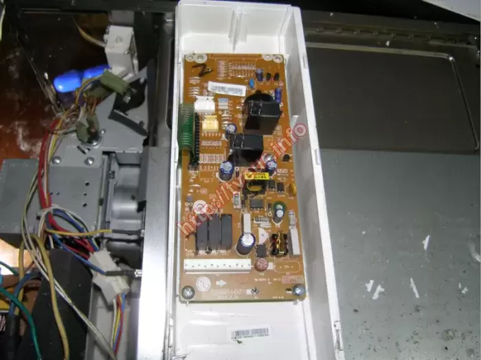 Мультифункциональная отдельно стоящая микроволновка с грилем и конвекцией - LG MC7849H не греет. По этой причине она доставлена в сервисный центр, где ремонт микроволновки LG будет сделан на высоком профессиональном уровне. В данной модели используется плата управления EBR614607 с трансформатором EBJ60659402, у нее имеется кварцевый гриль, что дает возможность добиться необходимой температуры в считанные минуты и максимально равномерно обжаривать готовящиеся блюда. Устройство с мощностью СВЧ 900 Вт, у него в наличии пять уровней мощности, восемь программ автоматического приготовления и еще восемь программ «Русский повар». Объем духовки также достаточно большой и составляет 28 литров. Благодаря наличию специальной функции блокировки клавиш, предотвращается возможность случайного включения СВЧ печи, что по достоинству будет оценено теми, у кого есть маленькие дети. Полностью разобрав микроволновую печь и выполнив диагностику, установлено, что из строя вышел блок коммутации, поэтому ремонт микроволновки LG состоял в восстановлении питания ВВ цепей, регулировке блока коммутации. Заменен микропереключатель 16а 250в. Это позволило полностью решить создавшуюся проблему. После выполненного ремонта нагрев хороший.