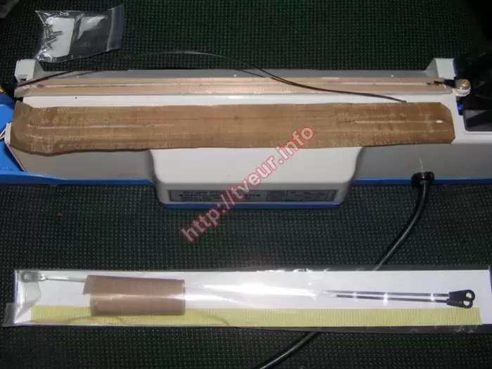 После разборки устройства и проведенной диагностики выяснили, что из строя вышли термоцепи, соответственно ремонт направлен на восстановление их работоспособности. Нами заменен нагревательный элемент, который принес заказчик (см. фото №3). Для выполнения вышеописанных работ использовалась специальная термоизолента (тоже клиента). Это существенно повлияло на окончательную цену, с которой пользователь полностью согласен. При дальнейшей эксплуатации этого импульсного запайщика пакетов мастер рекомендовал своевременно очищать образующийся нагар, правильно подбирать мощность.