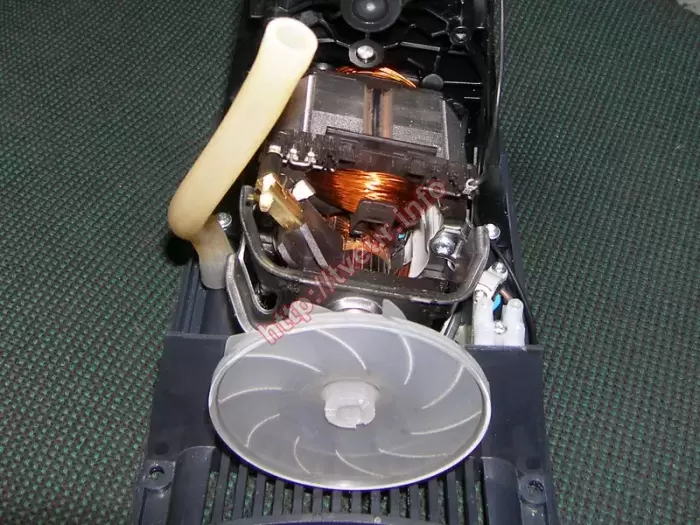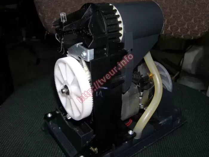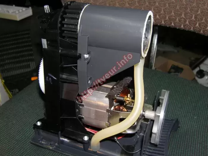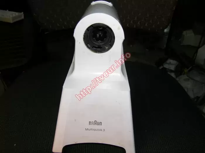 В стильной и современной электромясорубке Braun 1300G с максимальной мощностью при блокировке двигателя 1300 Вт перестал нормально крутиться шнек, вероятнее всего ее перегрузили. При этом в любом случае требуется ремонт электромясорубок в сервисной мастерской. Устройство поступило в удовлетворительном состоянии, его белый пластиковый корпус грязный (отчетливо видно на фото № 1). Но чтобы точно определить первопричину неисправности, требуется диагностика, для этого мясорубку пришлось полностью разбирать (фото № 3,4). Данная модель с производительностью 1,5 кг/минуту, у нее нержавеющий нож и диски специальной формы, что гарантирует получение самых оптимальных результатов. В комплекте к мясорубке предусмотрена три диска с отверстиями диаметром 3 мм, 4,5 мм и 8,2 мм (все насадки изготовлены из нержавеющей стали). У электромясорубки одна скорость, у нее отсутствует такая функция, как «РЕВЕРС». С помощью диагностики удалось установить, что проблема возникла в работе редуктора, а это значит, что ремонт электромясорубок был направлен на возобновление работоспособность данного узла. Неисправность удалось устранить. Кроме того, необходима замена большой белой шестерни (1), а также большой черной шестерни (3), у которых сломаны зубья, поэтому возобновлению они не подлежат. В итоге обе шестерни заказаны и заменены. После ремонта устройство нельзя перегружать, также сильно не зажимать ножи, следить за их заточкой.