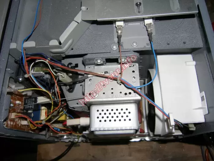 В сервисный центр поступила инверторная микроволновая печь Panasonic NN-G385MF, которая не включается. Со слов заказчика, он пытался самостоятельно ее ремонтировать, разобрал, но решить проблему не смог. После этого обратился в мастерскую, чтобы там срочно выполнили ремонт инверторной микроволновки на профессиональном уровне. Внешнее состояние устройства хорошее, внутренняя духовка немного загрязнена, на ней потеки жира (отлично видно на фото № 1). Прежде чем заниматься любыми восстановительными работами, необходимо точно определить те модули, которые вышли из строя и стали причиной неисправности. Для этого у нас всегда осуществляется на специальном оборудовании предварительная диагностика, с помощью которой удалось установить, что проблема возникла в блоке коммутации, плате управления и блоке инвертора. Это достаточно серьезная поломка, соответственно ремонт инверторной микроволновки будет не простым. Кроме того, сгорел сетевой предохранитель. После того, как установили новый предохранитель, микроволновка включилась, но при старте выбивает пробки, поэтому проблема не решена. В результате сделано восстановление работоспособности блока коммутации, пропай платы управления и блока инвертера, перепаяны многие компоненты. Сделана чистка микроволновки, замена предохранителя 20а 250в(большого), а также механических реле в количестве 2 штук. После вышеописанного ремонта неисправность полностью устранена.
