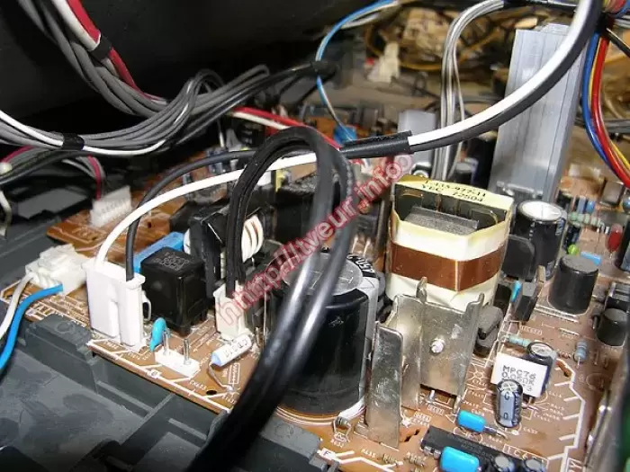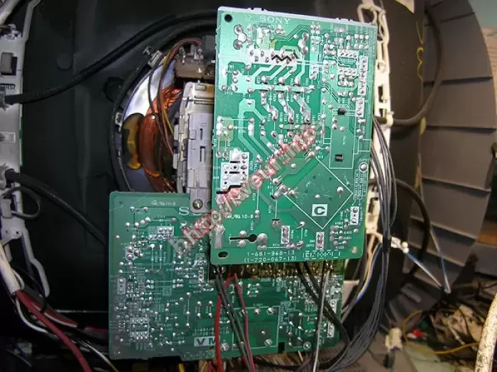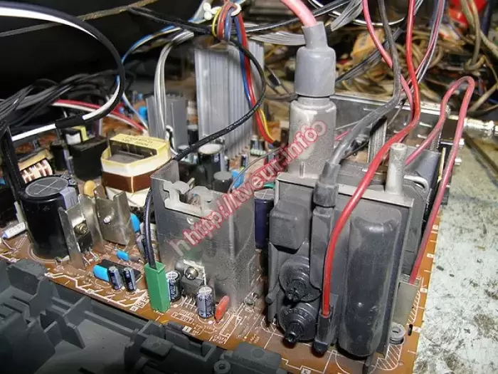 Телевизор включается, а потом через 30с отключается и лампочка мигает 11 раз. Происходит отключение в защиту с ошибками 02 и 11, кроме того присутствуют трещины в плате. Ремонт телевизоров производился в модуле питания и строчной развертки.