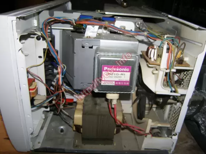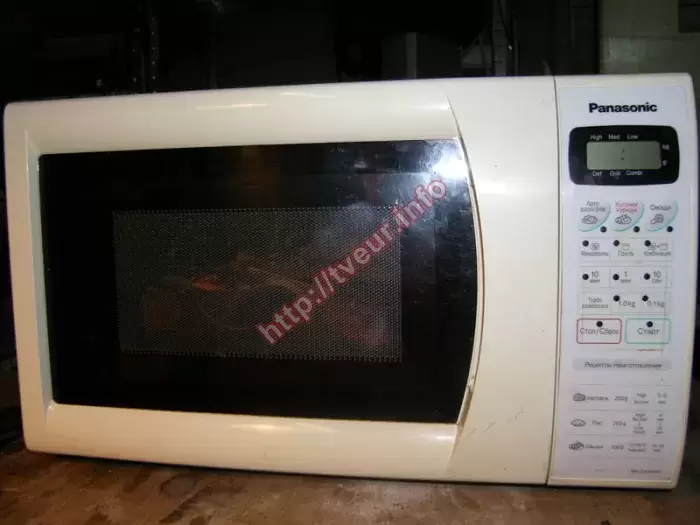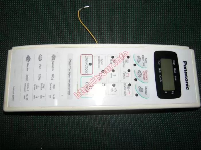 В микроволновой печи Panasonic NN-GX36WF, в которой используется магнетрон 2M210-M1 и плата C9594V-0 не работает клавиатура, также отсутствует подсветка. По этой причине пользователь обратился в наш сервисный центр, где можно выполнить ремонт микроволновых печей любых типов и моделей, не зависимо от неисправности. Как объяснил заказчик на приемке, устройство перестало включаться. Эта модель с электронным (сенсорным) типом управления, внутренним объемом 21 литр и кварцевым грилем. Мощность микроволн 800 Вт, а мощность гриля - 1100 Вт. У СВЧ печи четыре уровня мощности, имеется функция автоматической разморозки. После предварительного осмотра стало понятно, что в целом устройство в неплохом состоянии, при этом кнопки клавиатуры срабатывают через раз, также сгорела лампочка подсветки. Более точная диагностика подтвердила предположения, что из строя вышел модуль управления. Его работоспособность удалось восстановить. При этом пленочная клавиатура (мембрана) NN-GX36WF требует замены. С такой неисправностью ремонт микроволновых печей состоял в том, что пришлось переделывать клавиатуру под кнопки. Кроме того, была заменена новая лампочка 250в 25вт (миньон). Благодаря правильно выполненному ремонту, эта микроволновка сможет проработать длительное время, если клавиатуру в дальнейшем не мыть водой, со всей силы на нее не нажимать. Об этом поставлен в известность заказчик.