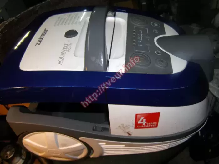 Моющий пылесос с аквафильтром Zelmer 919.0 ST не работает, он не включается, у него отломано одно колесо. С такой заявленной неисправностью он доставлен в сервисную мастерскую. Этот моющий пылесос ремонт которого станет неизбежным, является многофункциональным, ним можно быстро и легко собрать пыль и мелкий мусор в мешок Safbag, воспользоваться специальным контейнером с водой, или собрать воду выполнить влажную чистку ковров, обивки кресел и диванов. За качество исходящего воздуха несет ответственность система двойной фильтрации, в которой используются фильтра HEPA, которые можно промывать под струей воды. Потребляемая мощность устройства 1600 Вт, а длина шнура 6 метров. Пылесос в удовлетворительном состоянии, не смотря на то, что его корпус чистый, внутри устройство очень сильно запылено, отсутствует контакт в сетевой катушке, отломано одно колесо. Более тщательная диагностика показала, что моющий пылесос ремонт выполнялся в сервисном центре, нужен еще и потому, что из строя вышли сетевая катушка и нижнее основание. В результате ремонт состоял в восстановлении механизма сматывания шнура, кроме того сделано закрепление колеса. Неисправность удалось ликвидировать, при этом пользователю даны рекомендации по правильной дальнейшей эксплуатации, а именно, не тянуть сильно за шнур, использовать по назначению, периодически ухаживать, фильтры очищать.