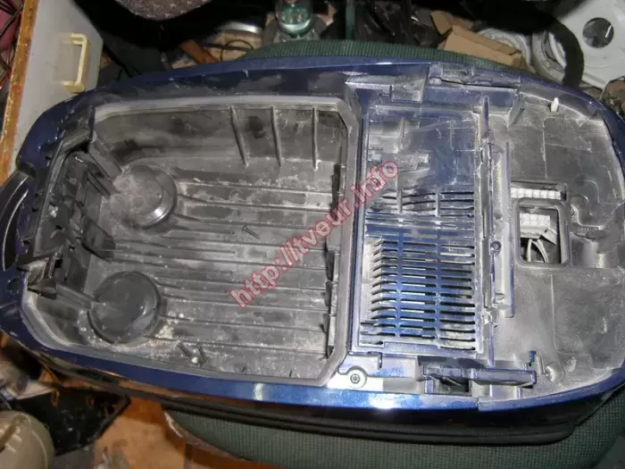 Пылесос для сухой уборки с мощностью 2000 Вт - Miele S 758 не работает, он не включается. С такой заявленной неисправностью он поступил в наш сервисный центр, где всегда можно сделать ремонт пылесосов, не зависимо от того, насколько сложной окажется неисправность. Эта модель с фильтром тонкой очистки, наделен такими интересными функциями, как индикатор перегрева, электронная индикация замены фильтра исходящего воздуха. У него имеется индикатор заполнения пылесборника, автоматическое сматывание сетевого шнура, ножной переключатель вкл./выкл., который расположен на корпусе, а также вертикальная парковка. Пылесос поступил в удовлетворительном состоянии, он сильно запылен, произошел обрыв сетевого провода в катушке сматывания шнура, на шнуре уже имеется изолента, по всей видимости пытались восстанавливать шнур. Кроме того, в пылесосе отсутствует входной фильтр, выходной фильтр сильно забит пылью. С таким набором неисправностей, ремонт пылесосов состоял в замене механизма сматывания шнура в сборе, входного фильтра. Также сделана чистка устройства. После выполненного ремонта моторный и предмоторный отсек полностью в рабочем состоянии. Заказчику даны советы по правильной дальнейшей эксплуатации этого пылесоса, он поставлен в известность о том, что ним нельзя убирать строительный мусор и цемент. Кроме того, желательно заменить НЕРА фильтр.
