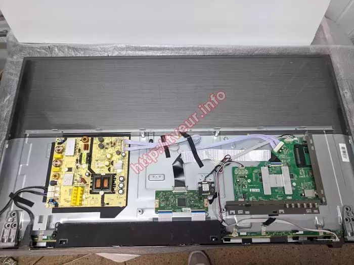 Проведение диагностики потребовало полной разборки телевизора. Это дало возможность понять, что в телевизоре имеются модули, такие как блок питания TV5502-ZC02-01(K)2016 12 22, материнская плата NS65860-ZC01-01, матрица LC430EGY-SJM1, шлейф E351714. Подсветка в этом телевизоре состоит из 5 планок, на каждой из которой расположено по 10 светодиодов. Мастер протестировал все имеющиеся светодиоды и выяснил, что многие из них перегорели. Так как в данной ситуации перепаивать все неисправные светодиоды не имеет смысла, ремонт подсветки экрана в телевизоре может заключаться в замене всего комплекта. Заказчик дал подтверждение на осуществление ремонта, так как для него является важным, чтобы этот процесс завершился успешно.