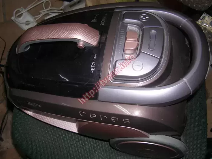 Пылесос контейнерного типа (без наличия мешка для сбора пыли) Zelmer ZVC 352 SK (VC 3300.0 SK) отказывается пылесосить, он с некоторых пор вообще перестал включаться. По этой причине заказчик обратился в сервисный центр, чтобы был выполнен срочный ремонт пылесосов, так как без него производить уборку в квартире крайне не удобно. От него мастер узнал, что с такой проблемой сталкивается впервые, до этого устройство работало без каких-либо сбоев. Он попытался сам предпринять какие-то меры, почистил контейнер от грязи и пыли, проверил шланг, возможно там могло что то застрять. Но данные действия ничего не решили, пылесос не работал. Данная модель предназначена для сухой уборки, она наделена мощностью 2000 Вт, у нее универсальная парковка. Объем пылесборника составляет 2 литра, имеется индикатор заполнения контейнера. Пылесос поступил в хорошем состоянии, его корпус без видимых механических повреждений, чистый и аккуратный. Чтобы узнать, что стало причиной неисправности, а также как в дальнейшем выполнять ремонт пылесосов, потребовалась диагностика, для чего устройство полностью разобрали. Как оказалось, из строя вышла плата управления. Чтобы восстановить ее работоспособность пришлось перепаять некоторые детали. Кроме того, клиент извещен о том, что в скором будущем неисправность может возникнуть в процессоре, поэтому опять потребуется ремонт. Рекомендовано пылесос во время уборки не перегружать, периодически за ним ухаживать.