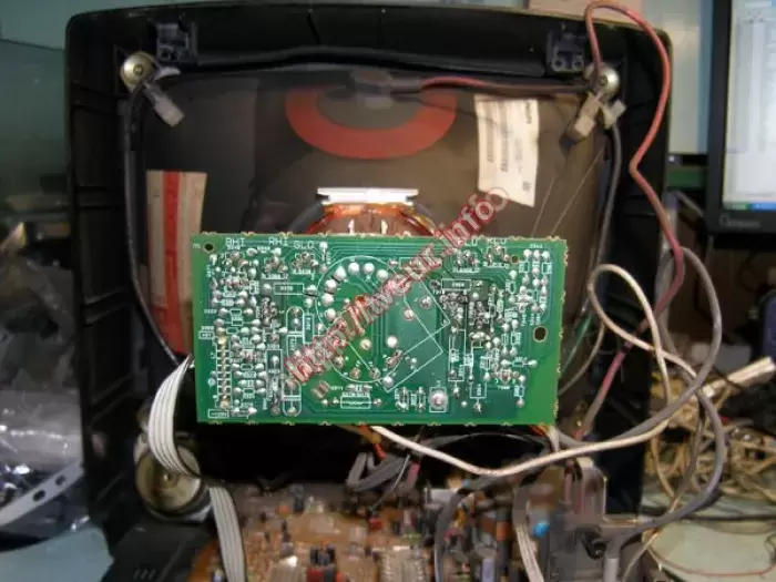 Со временем ресурс припоя исчерпывается, что и произошло в данном устройстве и потому понадобится ремонт телевизоров. Была произведена пропайка в плате кинескопа, кроме того выполнена профилактика и замена транзистора ВС338-40.