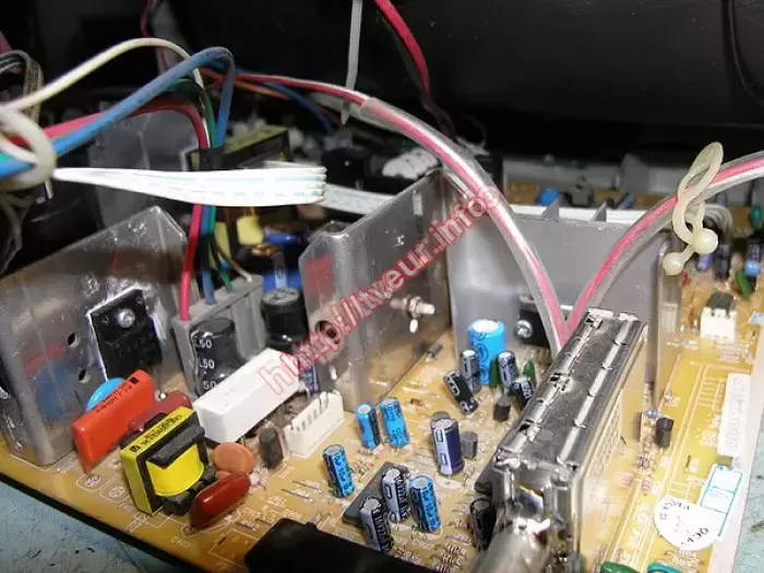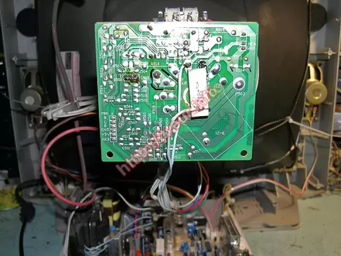 Ремонт телевизоров был произведен в модуле строчной развертки и платы кинескопа. Была выполнена реставрация антенного гнезда, переделка цепей накала кинескопа (утечка красный катод-накал), профилактика и замена транзистора BU 508DF.