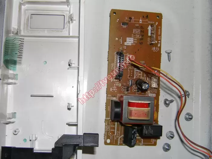 В отдельностоящей микроволновой печи Panasonic NN-S554WF с грилем, инверторным управлением и внутренним жаропрочным покрытием не работают все кнопки, функционирует только одна кнопка «Сброс». Именно это стало причиной обращения в нашу мастерскую, где выполняется послегарантийный ремонт микроволновых печей любой сложности. Данная бытовая техника с высокой мощностью 1100 Вт и объемом 27 литров. У нее сенсорная панель управления, имеется блокировка от детей и автоматическая инверторная TURBO-разморозка. Устройство поступило в хорошем состоянии, внутренняя духовка СВЧ печи немного зажирена и грязная, особенно верх (можно посмотреть на фото № 1). Слюдяная пластина слегка потемнела, но пока не прогорела. Выполнив диагностику, мастер, который занимался ремонтом микроволновых печей определил, что проблема возникла в лицевой панели, а именно из строя вышла пленочная клавиатура. Такая неисправность относится в достаточно распространенным, и нею подвержены СВЧ печи данного производителя. Она происходит, когда клавиатуру моют водой, а микроволновку после приготовления блюд не проветривают. Данный пример не исключение. В результате ремонт состоял в замене новой пленочной клавиатуры, сделана чистка. Для его выполнения устройство полностью разбирали (видно на фото № 4). В дальнейшем клавиатуру водой не мыть, только слегка влажной тряпкой.