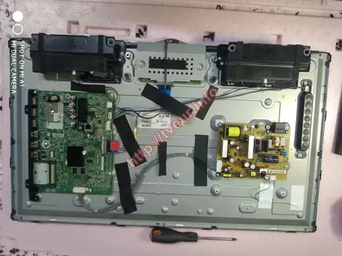 Для того чтобы стала возможной полноценная диагностика телевизоров, выполнена полная разборка устройства. Это стандартная процедура, позволяющая получить доступ ко всем внутренним модулям и точно определить источник неисправности. После вскрытия телевизора было установлено, что в нем используются следующие аппаратные компоненты: основная системная плата (MAIN BOARD) марки E230374, оснащенная интегрированным ТВ-тюнером EBL61240503 TDSQ-G601D(B), а также ЖК матрица типа LC320DUE (SF)(R1) производства LG Display. В ходе комплексной диагностики было выявлено, что характер неисправности относится к категории сложных. Основная проблема заключалась в выходе из строя ключевых модулей устройства - материнской платы и блока питания. Материнская плата ответственна за управление изображением, звуком и всеми интерфейсами подключения, ее повреждение напрямую влияет на работоспособность телевизора в целом. Что касается блока питания, то в нем были обнаружены дефектные радиоэлементы, включая электролитические конденсаторы, резисторы и силовые компоненты. Особенно критичным стало выявление неисправности одной из управляющих микросхем, отвечающей за стабилизацию напряжения питания отдельных узлов телевизора. Для восстановления блока потребовалась точечная замена и перепайка поврежденных элементов с использованием паяльной станции и микроскопа.