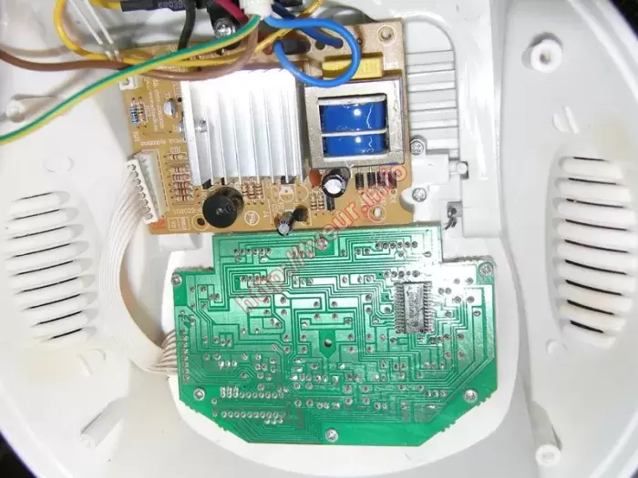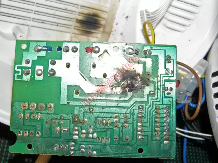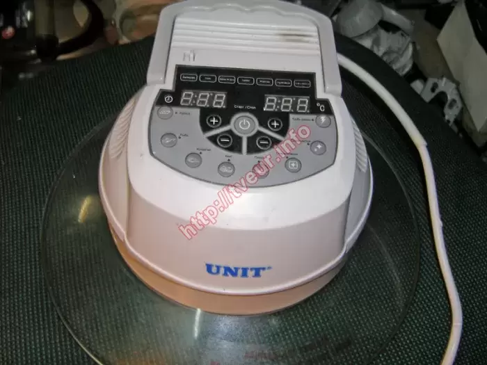 Аэрогриль Unit UCO-918 с электронным управлением перестал включаться, кроме того, он искрит внутри. Мастера нашего сервисного центра выполнят любой сложности ремонт аэрогрилей, поэтому устройство было принято в работу. Эта модель стала обладательницей мощности 1400 Вт и объема 12 литров, в ней можно готовить блюда в режиме конвекции посредством циркуляции горячего воздуха. У нее электронное управление, имеется LED дисплей. Состояние этой бытовой кухонной техники удовлетворительное, это стало понятно сразу после предварительного осмотра, поскольку аэрогриль сильно зажирен, у него прогорела плата питания из-за попадания жидкости (отлично видно на фото № 5), также в нескольких местах оплавлен сетевой шнур. С таким набором неисправностей, далеко не все сервисные центры берутся за ремонт аэрогрилей, считая его не рентабельным. Мы же никогда не оказываем своим клиентам, поэтому отреставрировали плату питания, вышедшую из строя. Для этих целей был использован лак-Л8. Кроме того, смазан двигатель, выполнена чистка устройства. После такого ремонта аэрогриль включается, он больше не искрит, поэтому это опять можно эксплуатировать. При этом заказчик предупрежден о том, что в будущем во время работы аэрогриля, нельзя допускать попадания какой-либо жидкости в вентиляционные отверстия. Кроме того, за устройством необходимо периодически ухаживать, не допускать в нем скопления жира.