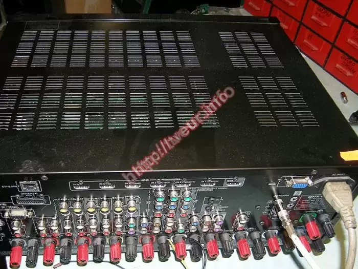 AV-ресивер 7.1 Marantz SR6001 с мощностью 100 Вт на канал не включается. На приемке в сервис центре были обнаружены обгоревшие детали, по видимому при включении загорелось внутри. Поскольку из строя вышел m. power amp., ремонт AV-ресиверов состоял в восстановлении данного модуля, а также замене многих пассивных элементов, которые пришлось заказывать. Подобный ремонт выполнен еще в двух ресиверах, а именно, в Onkyo TX-NR708 Black, в котором была заменена board hdmi - BCHDM-0471 25140471A и Marantz SR 7001. Все три модели полностью в рабочем состоянии.