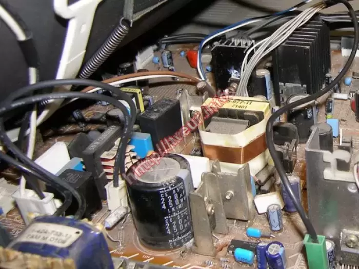 ТВ не включается, выдает ошибку 11 (11 раз мигает светодиод сети) – нужен ремонт телевизоров. Неисправность диагностирована в модуле строчной развертки, заменены следующие элементы: конденсатор 0.15 * 250 В и транзистор S2055N.