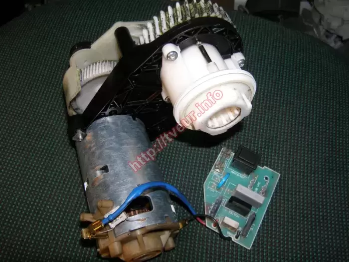 Электромясорубка Zelmer 886.84 Expressive перестала включаться, по этой причине пользователь обратился в наш сервисный центр, где ремонт электромясорубок можно сделать не зависимо от многих факторов (модели, фирмы-производителя, сложности поломки и т.д.). Данная модель - практичная и эстетичная, предназначена для быстрого и легкого перемалывания любого типа мяса, рыбы, овощей и других продуктов. Она с мощностью 1500 Вт, производительностью 1,5 кг/мин, а также защитой двигателя от перегрузки. До нас ремонт электромясорубок уже выполнялся, при этом положительного результата это не принесло. После предварительного осмотра был сделан вывод, что пластмассовый корпус устройства и кнопка включения немного грязные. Также на сетевом шнуре скрутка и шнур не звонится, насадка на тубус треснула. При этом главная причина неисправности кроется в вышедшей из строя сетевой плате, в которой проводился ремонт. В результате работоспособность этого модуля удалось полностью восстановить. Заменены варистор, две клеммы, а также сетевой шнур. Для выполнения вышеописанных работ эту электромясорубку пришлось полностью разбирать (отлично видно на фото №5). Теперь она включается, работает безотказно. Чтобы это продолжалось как можно дольше, рекомендовано мясорубку не перегружать, следить за тем, чтобы ножи были хорошо заточены, периодически ухаживать.