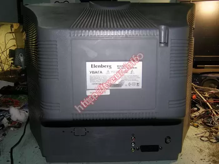 Кинескопный телевизор Elenberg 2125 с экраном 54 см не включается, с такой поломкой его принесли в наш сервис центр, пользователь не знает что случилось. Мы выполняем ремонт телевизоров, которые устарели, поэтому взяли его в работу. После осмотра выяснилось, что телевизор вскрывался, выпаяно несколько деталей. Поскольку проблема состоит в модуле питания и строчной развертки, эти узлы были отреставрированы. Заменено много разных деталей, включая 3 штуки R разных, 2SB 892, 2SC 3807, 2SD 1710 и др. После такого сложного ремонта, телевизор включается, работает хорошо.